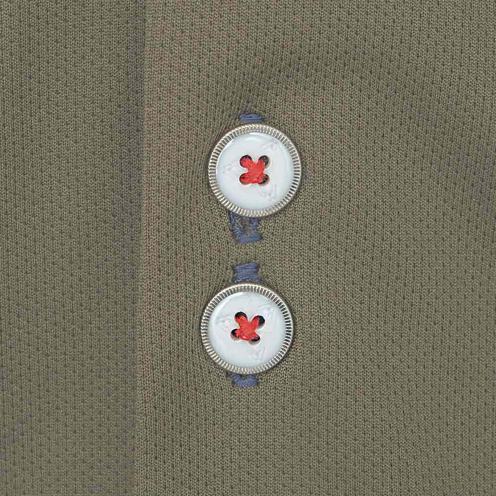 - Army green moisture-wicking main shirting fabric.