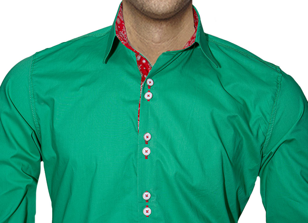 In response to the growing demand for high-quality green Christmas dress shirts, we have created a collection of specialty designs specifically for holiday occasions. Our Modern Christmas Shirts are meticulously detailed with contrast stitching over the metallic accent fabric and buttonholes, elevating the festive feel. Each shirt features a distinctive brass chrome ring double button design and double purl-stitched buttonholes, ensuring both durability and a refined look.