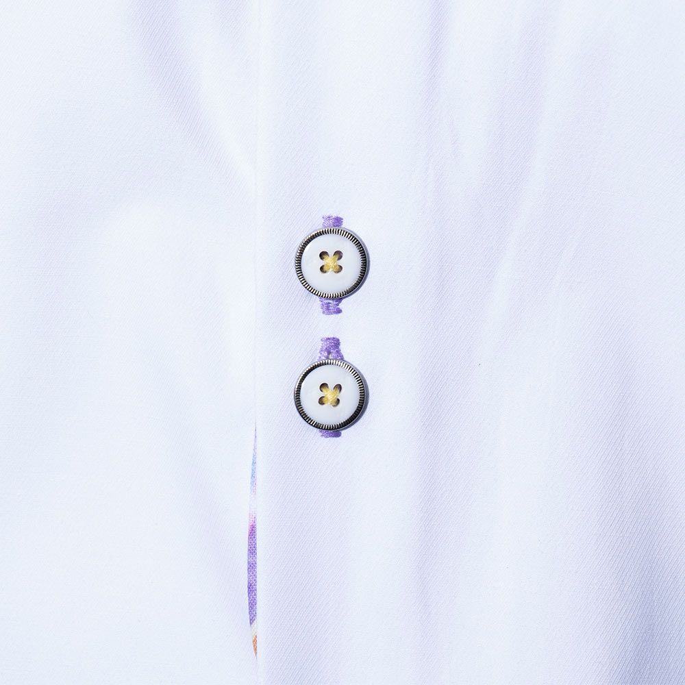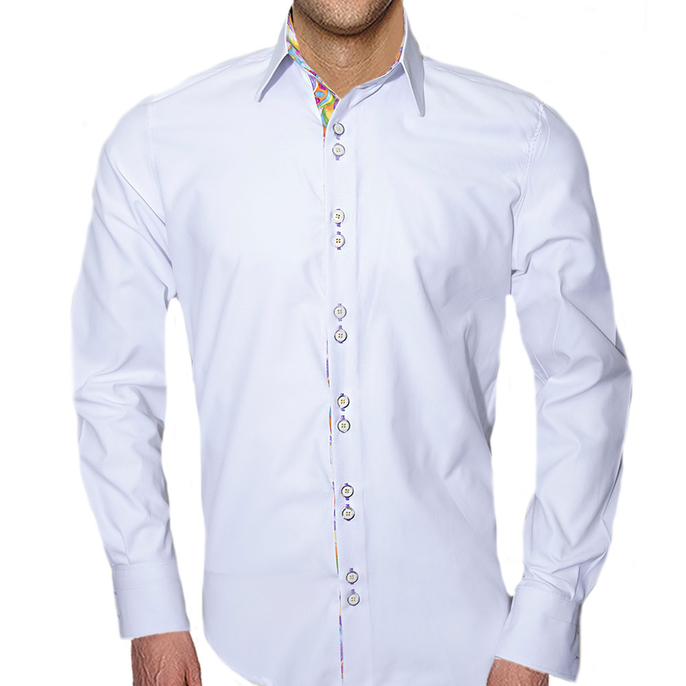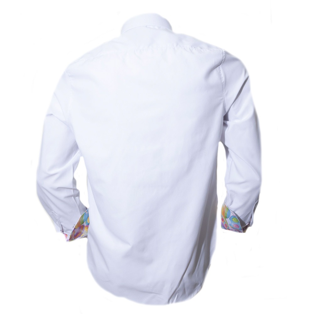 Anton Alexander dress shirts are available in two tailored styles to suit your preference: slim fit and modern fit. Each men’s shirt is designed with a unique white twill base enhanced by an Easter egg accent print, providing a touch of elegance that sets these shirts apart from the rest. The detailed contrast stitching on the fabric accents and buttonholes adds a layer of sophistication to the shirt’s design.