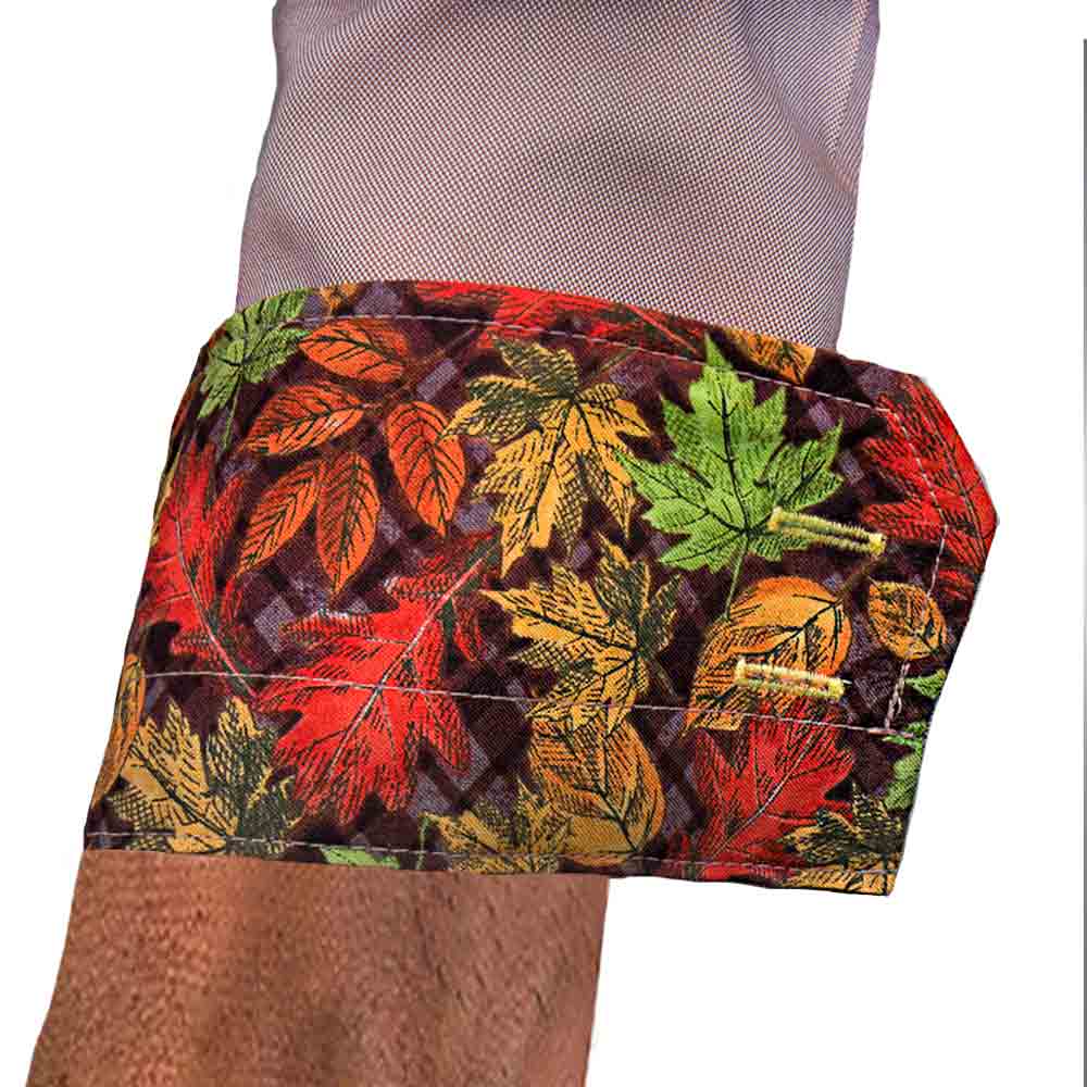 The Fall Style Dress Shirts are uniquely crafted with leaves as contrast print. Our Fall Style Dress Shirts are also proudly made in the USA. They are available in two different types, slim fit, and modern fit. This dress shirt is brown Italian oxford cotton with orange, red, yellow, and green leaves for contrast. There is contrast stitching over the contrast fabrics and buttonholes. Each men’s dress shirt has a unique gold ring double button design and double purl stitched buttonholes. The color configuration was specially handcrafted with autumn colors and a unique new look.