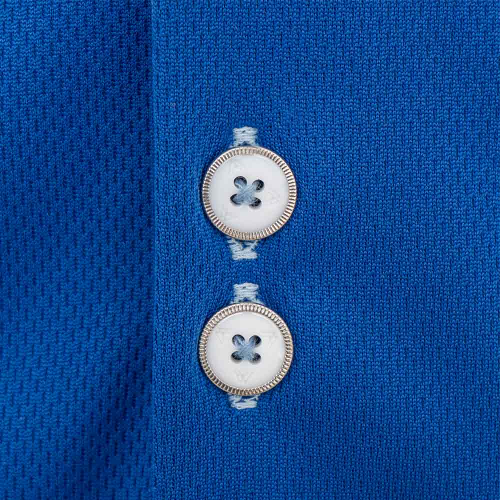 - Navy blue moisture-wicking main shirting fabric.