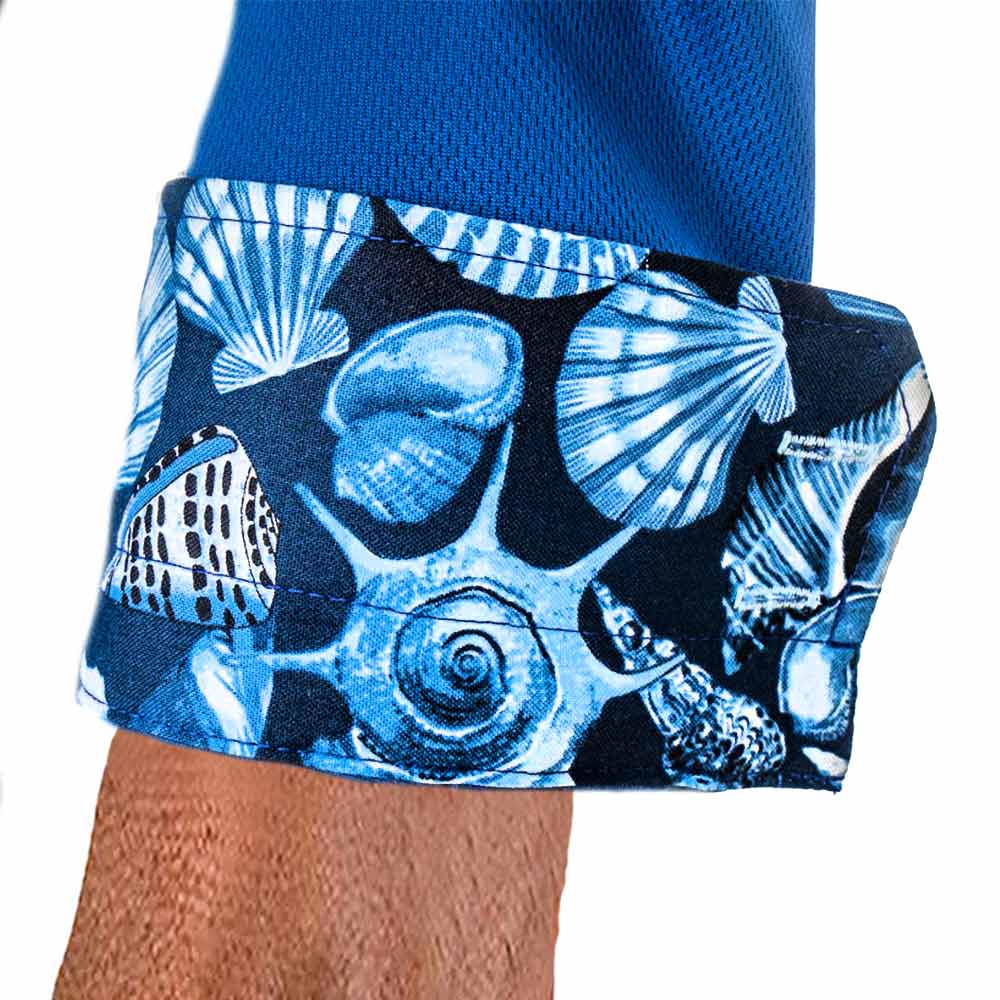 Anton Alexander Mens Beach Shirts are designed and made in the USA with great pride. Anton Alexander shirts are available in two different types, slim fit, and modern fit. These Shirts are made with navy blue moisture-wicking fabric with seashell accents. The fabric is ultra-light, easy to care for, and wrinkle-free. This new innovative fabric technology gives you many great benefits. Not only is it breathable for hot days, but it also has moisture-wicking technology. This eliminates the concept of sweaty armpits. The unique fabric blend is also wrinkle-free and super easy care. The entire shirt weighs less than 9oz. The design has contrast stitching over contrast fabrics and buttonholes. Every shirt has a unique silver ring double-button design with double purl stitched buttonholes.