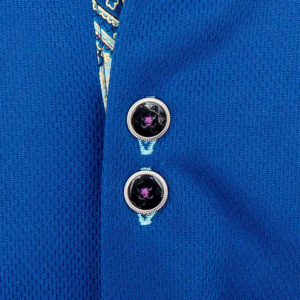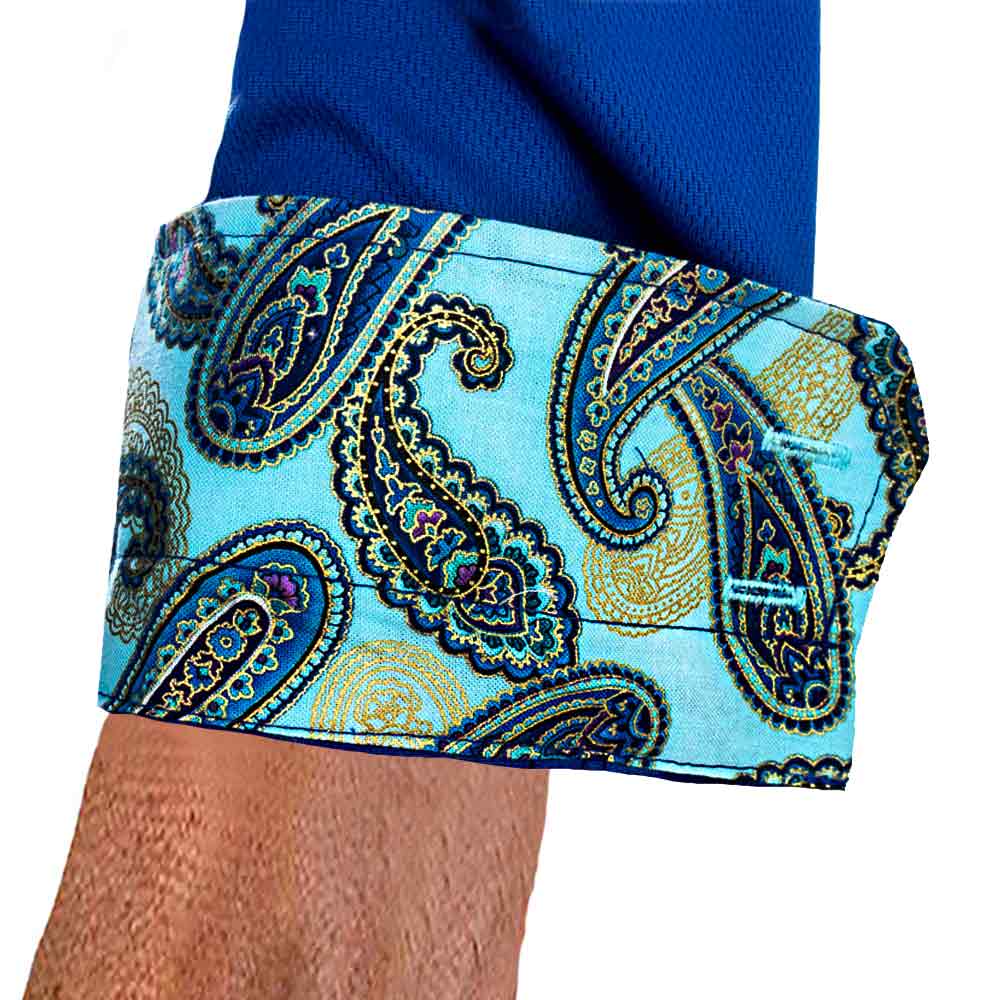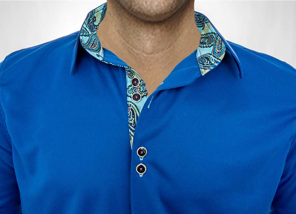 Anton Alexander Modern Navy Blue Dress Shirts are designed and made in the USA with great pride. Anton Alexander shirts are available in two different types, slim fit, and modern fit. These Modern Navy Blue Dress Shirts are made with navy blue moisture wicking fabric with blue and gold paisley accent. The fabric is ultra light, easy care, and wrinkle-free. This new innovative fabric technology gives you many great benefits. Not only is it breathable for hot days, but it also has moisture wicking technology. This eliminates the concept of sweaty armpits. The unique fabric blend is also wrinkle-free and super easy care. The entire shirt weighs less than 9oz. The design has contrast stitching over contrast fabrics and buttonholes. Every shirt has a unique silver ring double button design with double purl stitched buttonholes.