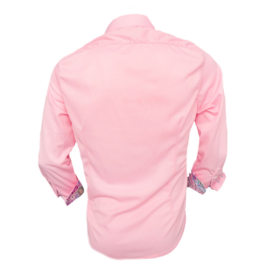 Anton Alexander Pink Floral Dress Shirts are designed and made in the USA with great pride. Anton Alexander shirts are available in two different types, slim fit, and modern fit. These Pink Floral Dress Shirts are made with pink moisture wicking fabric with multi colored floral accent. The fabric is ultra light, easy care, and wrinkle-free. This new innovative fabric technology gives you many great benefits. Not only is it breathable for hot days, but it also has moisture wicking technology. This eliminates the concept of sweaty armpits. The unique fabric blend is also wrinkle-free and super easy care. The entire shirt weighs less than 9oz. The design has contrast stitching over contrast fabrics and buttonholes. Every shirt has a unique silver ring double button design with double purl stitched buttonholes.