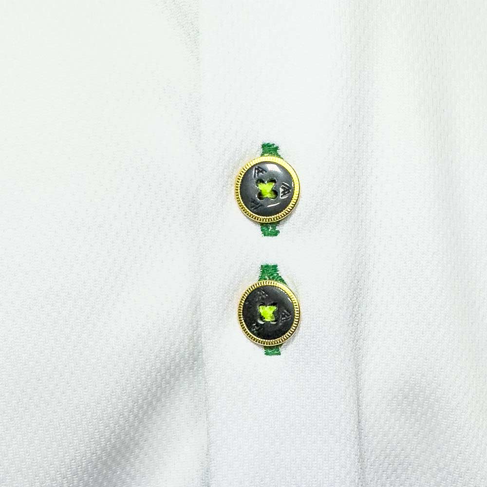 Anton Alexander St Patricks Button Down Shirts are designed and made in the USA with great pride. Anton Alexander shirts are available in two different types, slim fit, and modern fit. These St Patricks Button Down Shirts are made with white moisture wicking fabric with shamrock accent. The fabric is ultra light, easy care, and wrinkle-free. This new innovative fabric technology gives you many great benefits. Not only is it breathable for hot days, but it also has moisture wicking technology. This eliminates the concept of sweaty armpits. The unique fabric blend is also wrinkle-free and super easy care. The entire shirt weighs less than 9oz. The design has contrast stitching over contrast fabrics and buttonholes. Every shirt has a unique gold ring double button design with double purl stitched buttonholes.