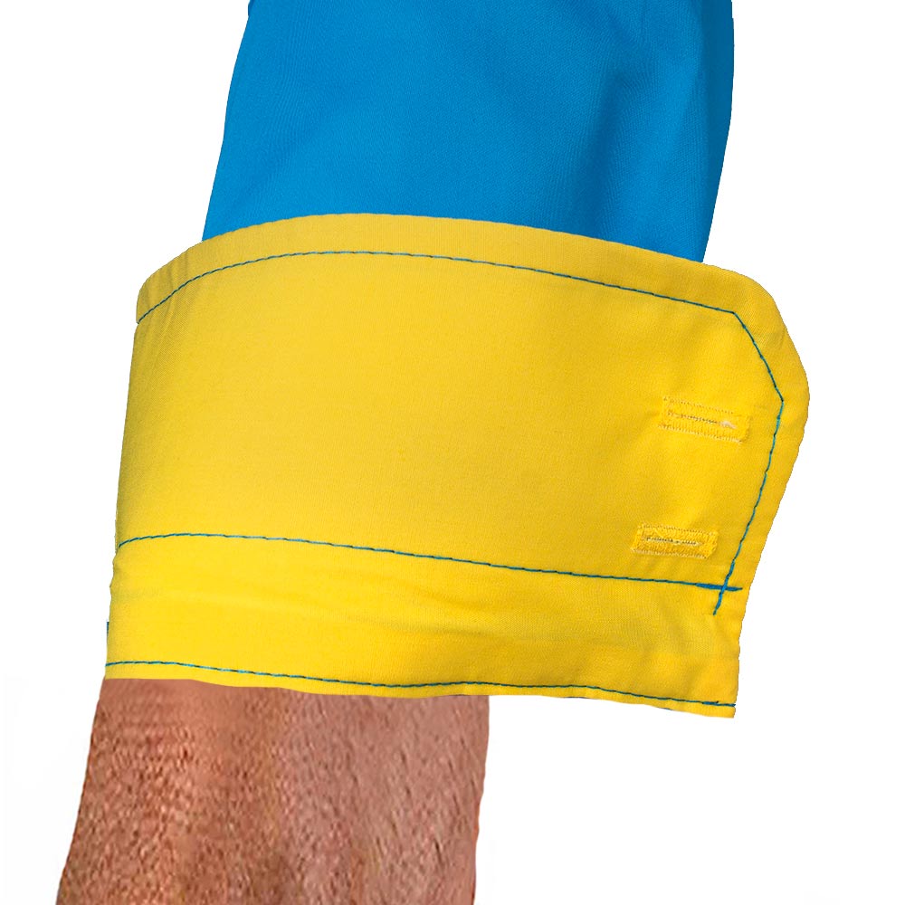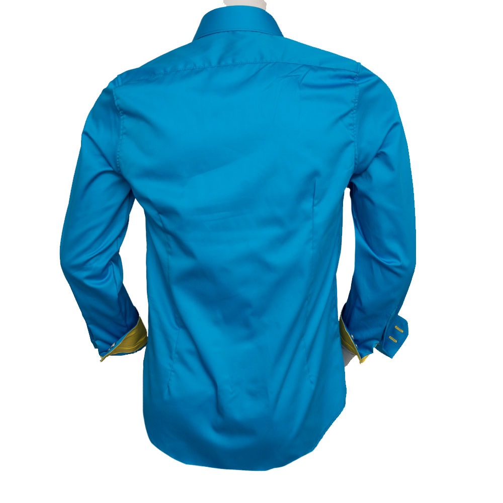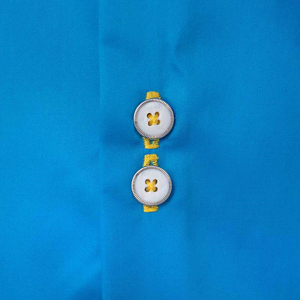 Our Ukraine Flag Shirts are destined to be among the finest among menswear. The shirts are available in two different types, slim fit, and modern fit. The Ukraine Flag Shirts are made with blue Italian cotton with bright yellow accent. There is contrast stitching over the contrast fabrics and buttonholes. Each men’s dress shirt has a unique nickel plated double button design and double purl stitched buttonholes.