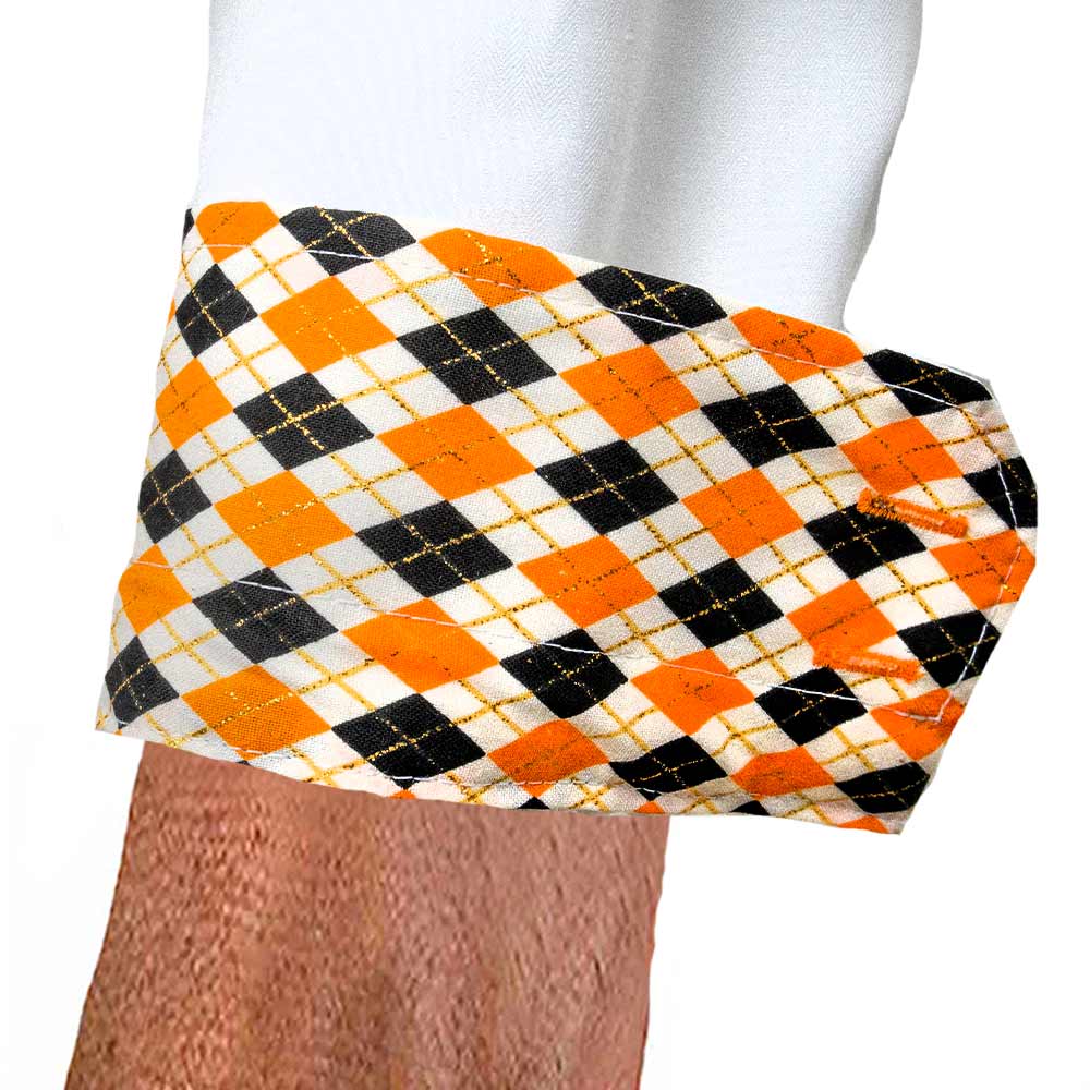 - Orange, black, and metallic gold plaid Accent fabric