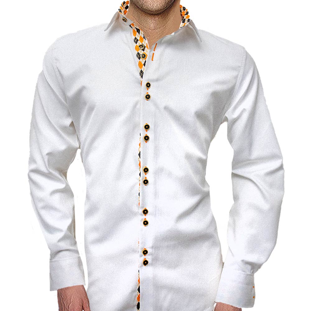Experience the ultimate style and sophistication with our collection of White Orange and Black Mens Shirts. Expertly crafted from premium materials, each shirt promises a polished and distinctive look, making it a standout addition to any modern wardrobe. Renowned for their exceptional quality, our White Orange and Black Mens Shirts are among the finest in menswear, proudly made in the USA.