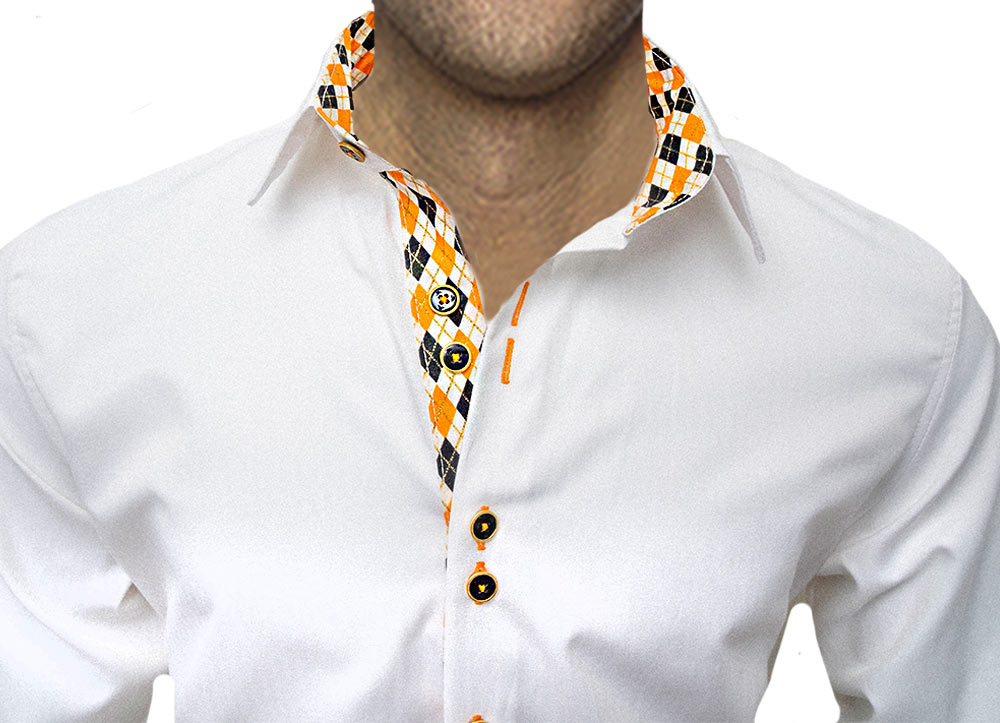 Home » White Orange and Black Mens Shirts