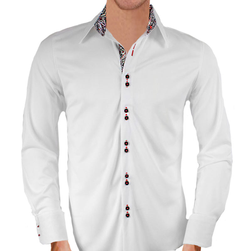White Red Paisley Dress Shirt